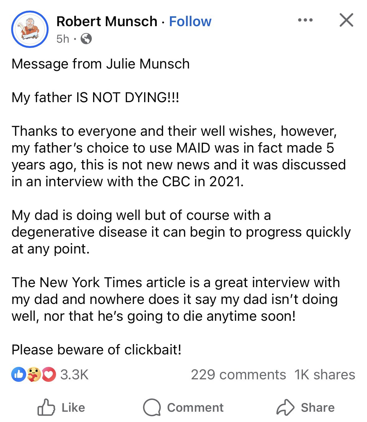 iHeart Posted September 15 Report Posted September 15 (edited) we're going to have to reserve a spot for Robert Munsch soon, this one is a real heartbreaker, I really hate Dementia Edited September 15 by iHeart